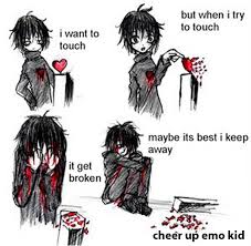 si quieres ser emo no lo preguntes por que ser emo es tuyo y se original,nosotros los emos tenemos que darnos un beso con una persona del mismo sexo(no nesesariamente).Pues si quieres ser emo es una descicion grande y u na cosa muy importante un emo no se hace nace.tienes que presumir nuestros intentos de suicidio